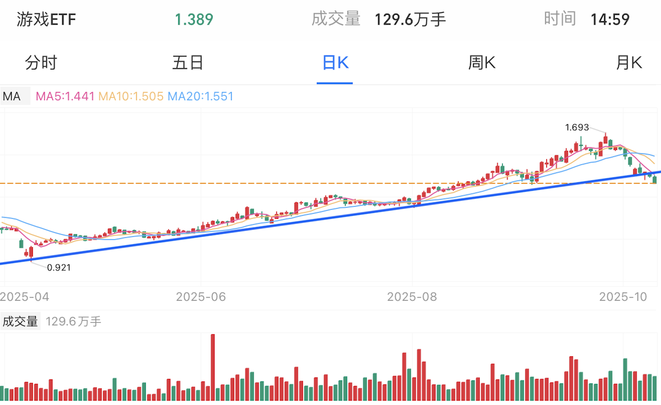 游戏近期一路震荡上行,最近在大幅反弹后力竭下跌,已经跌破中长期上涨趋势线,短期继续下行风险大。