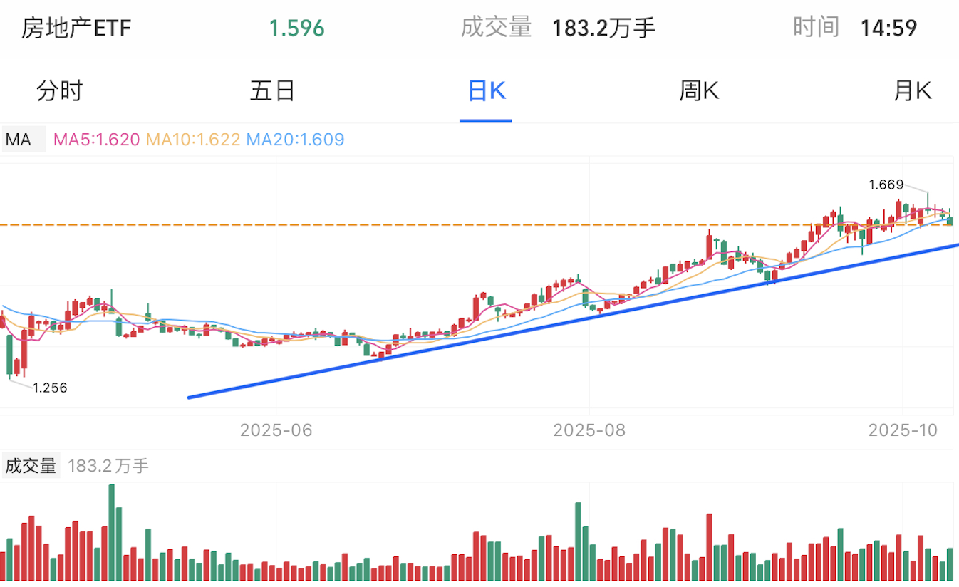 房地产近期震荡上行,短期盘整,这两日下跌,暂时没有跌破支撑位,短期继续盘整中,但没有改变上行趋势。