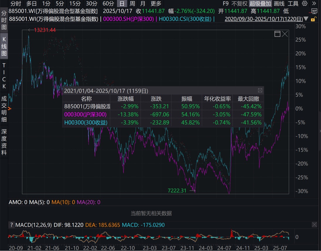 即使按照沪深300全收益指数计算,也是代表主动型基金整体表现的万得偏股混合型基金指数胜出