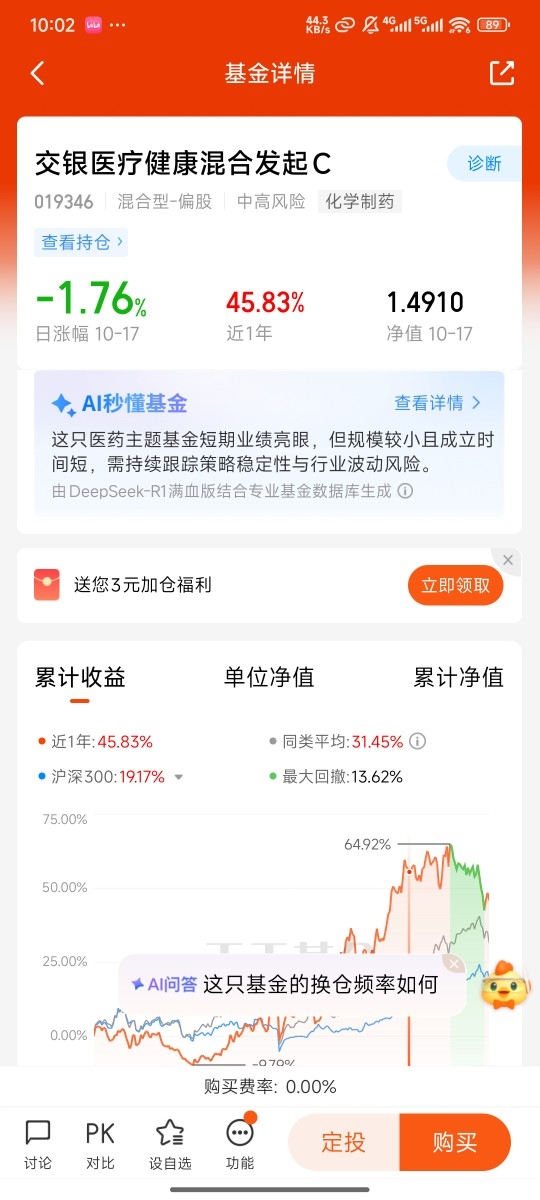 医疗板块后续行情值得期待,逢低入手准没错,尤其是交银医疗健康,值得重点考虑布局