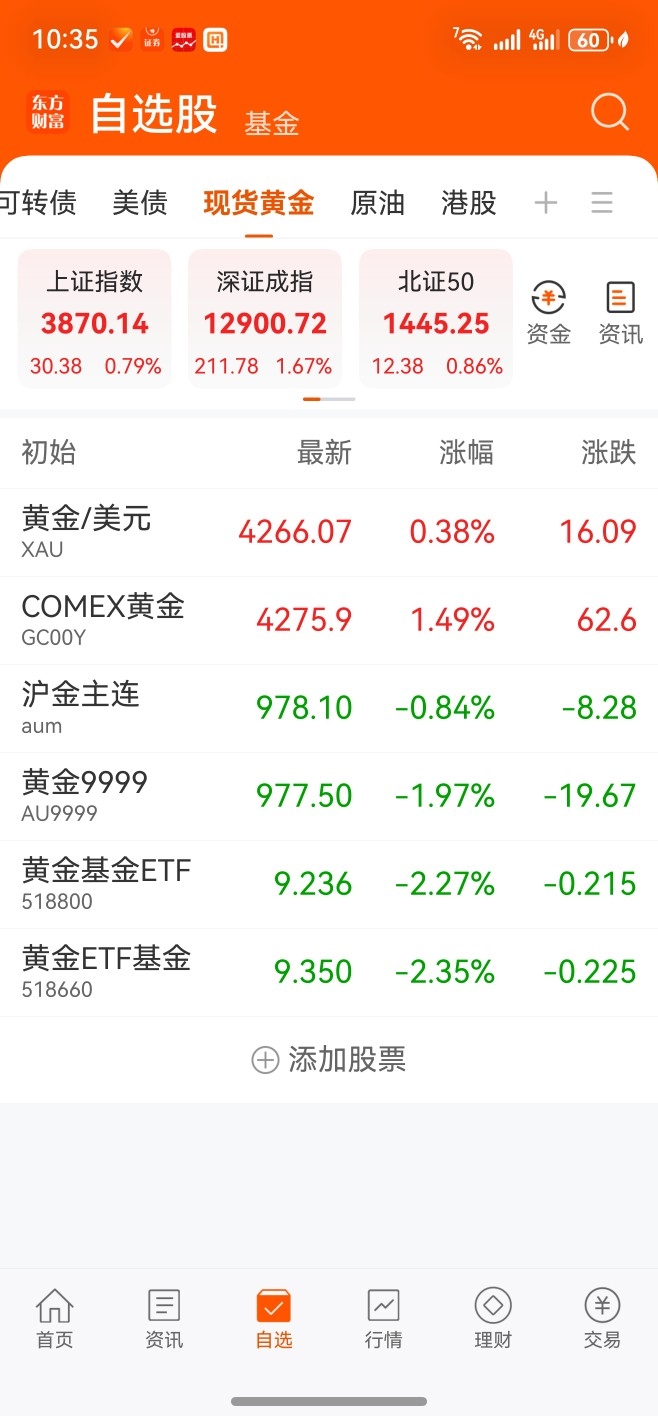 在今天上午9点35分,观察现货黄金是涨+0.38%。可能现货黄金,在今天美盘开盘