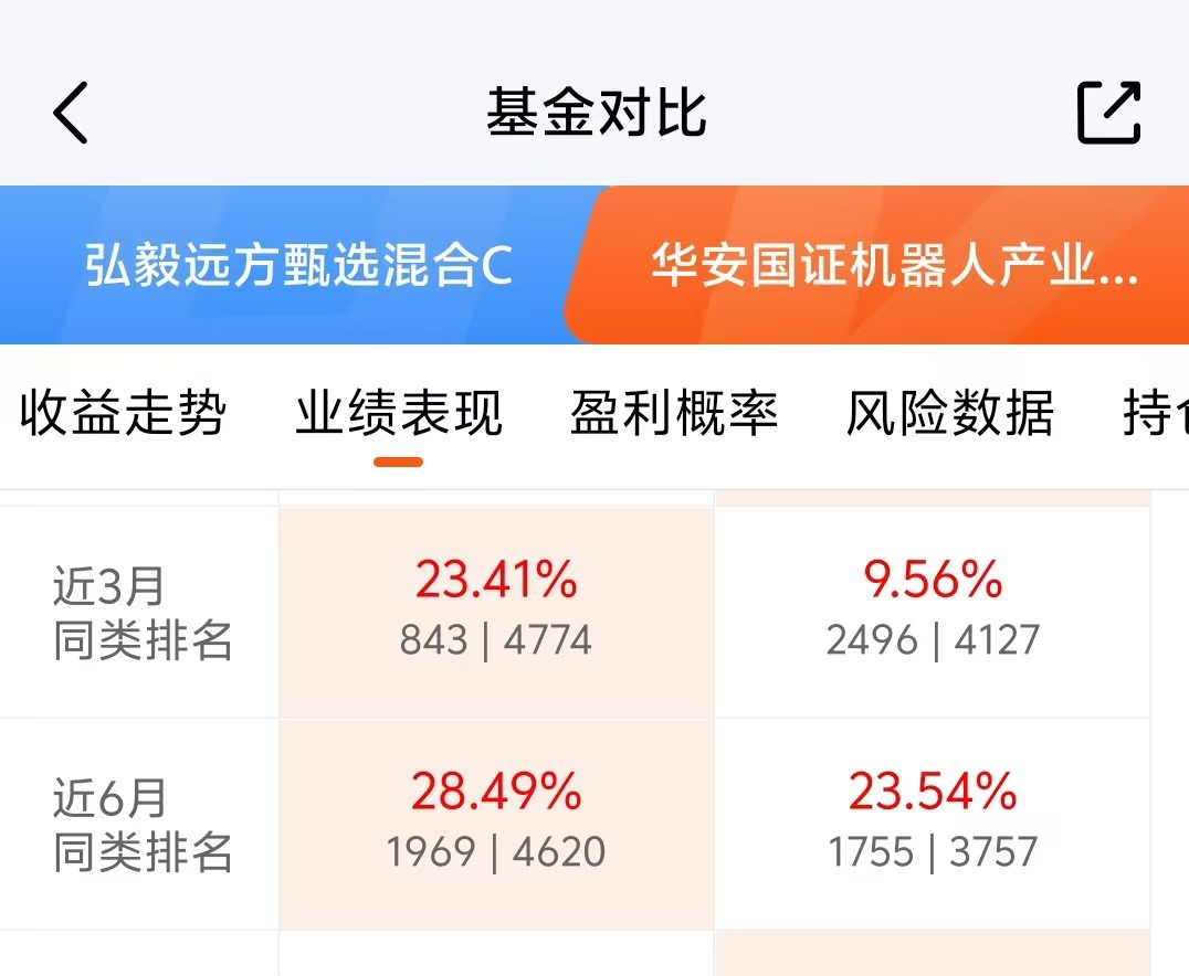 市场调整已收尾。弘毅远方甄选混合C近三月28.49%的涨幅领跑市场,当下机器人板块订单疯狂落地,指数回调后估值优势凸显,我果断布局了。