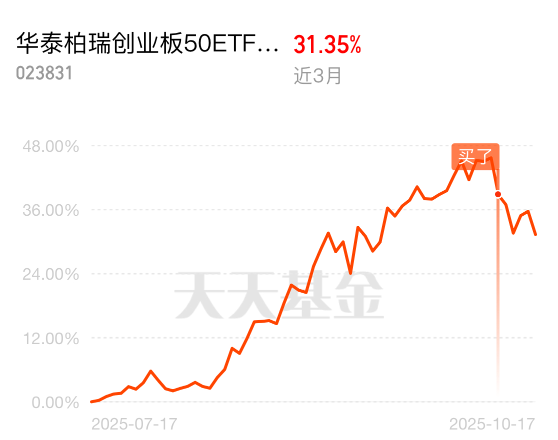 $华泰柏瑞创业板50ETF联接C$ 近三个月收益31.35%,今天估值再涨3.26%,围绕科技板块布局真是明智的选择。#人形机器人入厂经济账曝光:两年回本# #金价高位调整!顶部信号or短期调整?# #亚太股市杀跌 市场开启避险模式?#