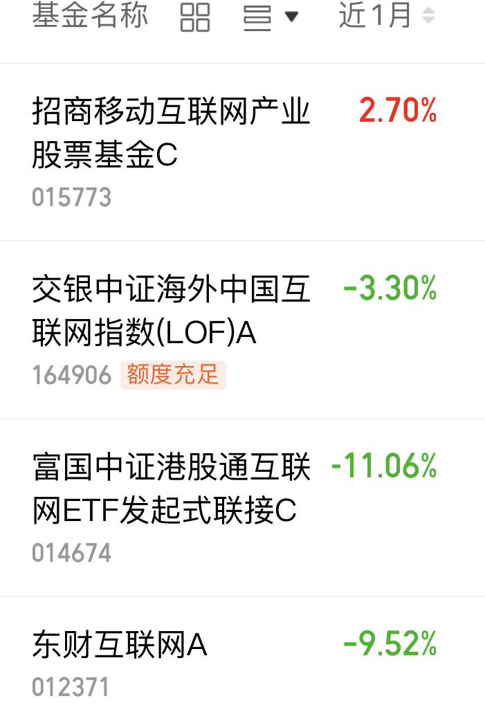 $东财互联网A(OTCFUND|012371)$近一月下跌9.52%
