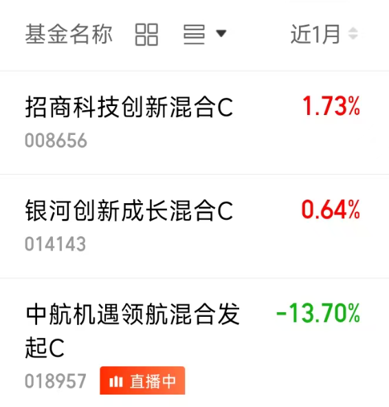 $中航机遇领航混合发起C(OTCFUND|018957)$近一个月-13.70%
