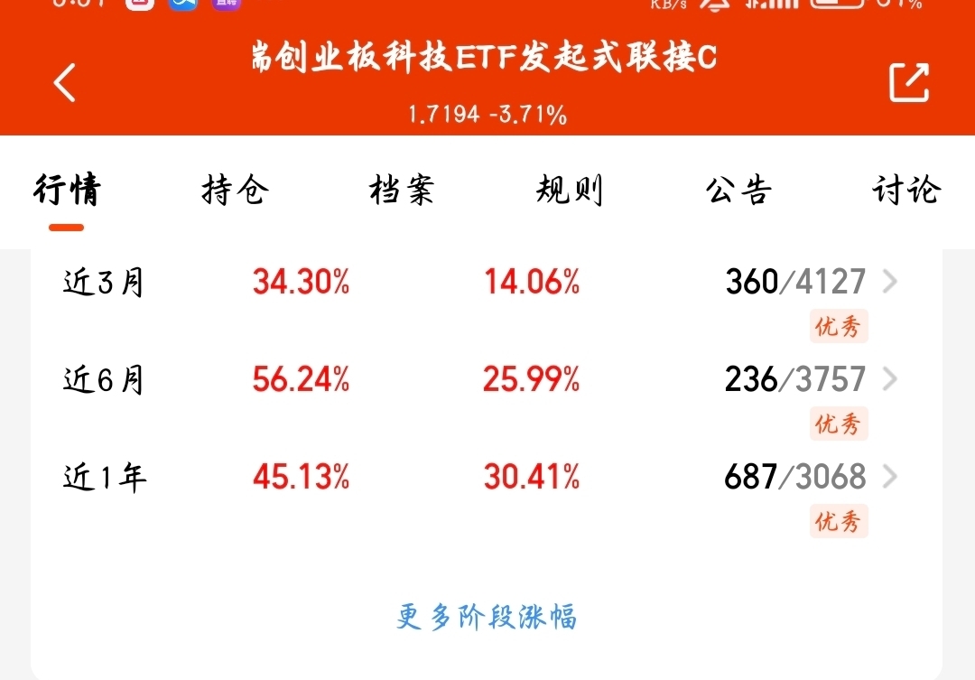 今天科技板块很强,我的华泰创业板基金估值涨超4%,三个月收益34%,没白等。