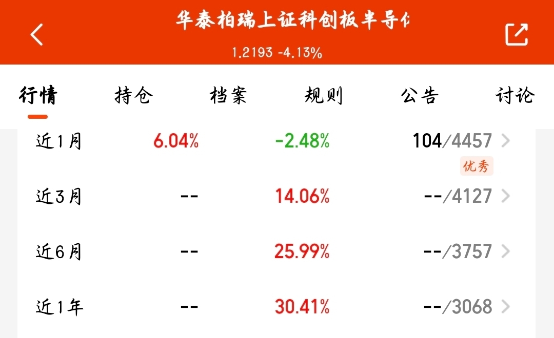 华泰科创半导体近一个月收益超6%,今天估值又涨1.34%,半导体板块还是行情主力