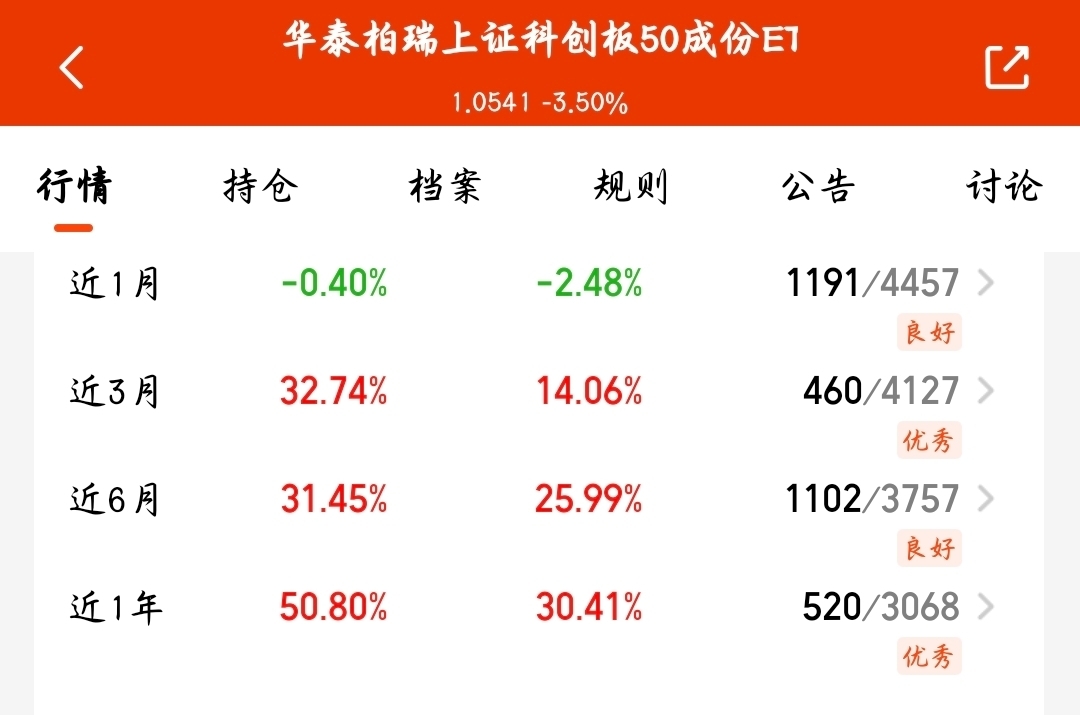 华泰科创50今天估值涨了1.78%,虽然不多但贵在持续。近一年50%多的收益,布