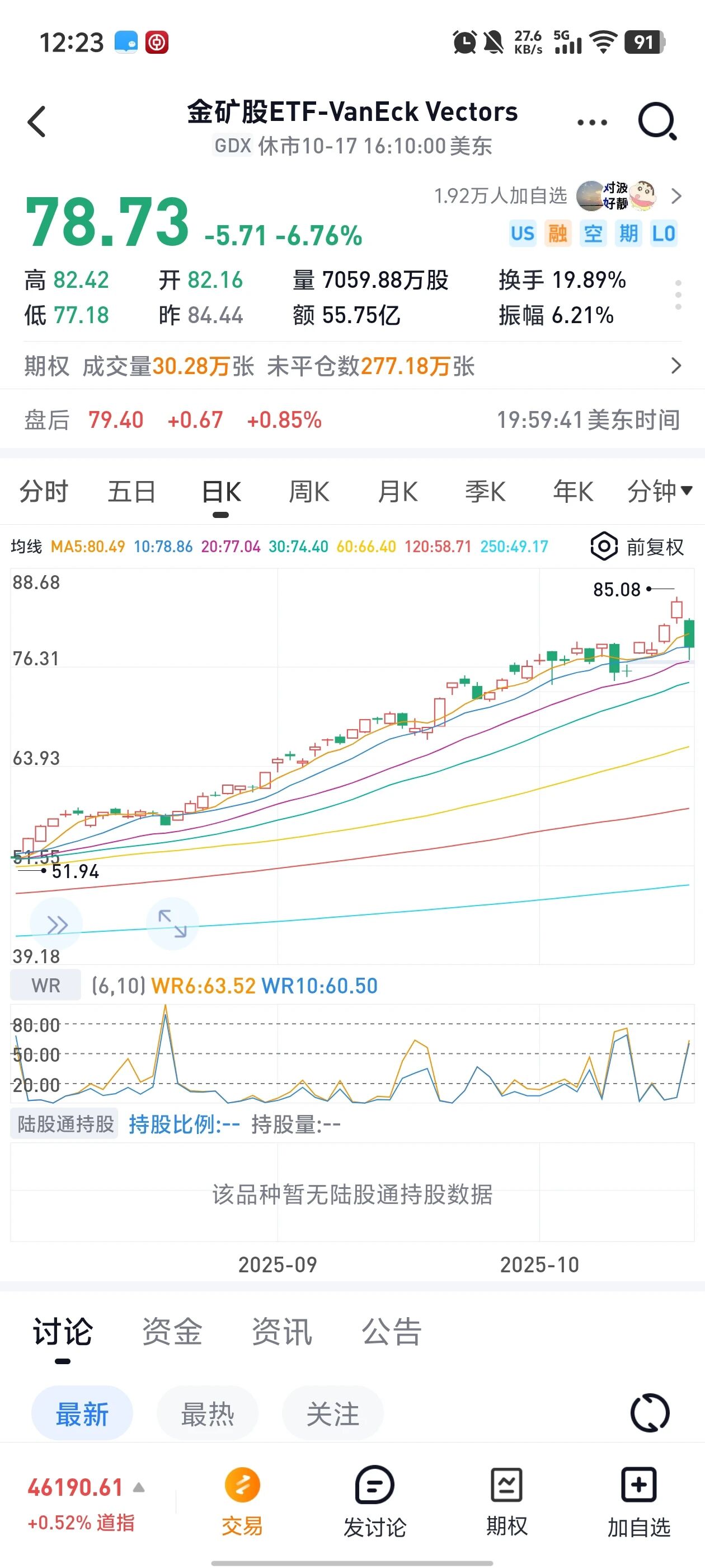 黄金股就跌的更多了,美股黄金股ETF周五晚上跌幅接近7%