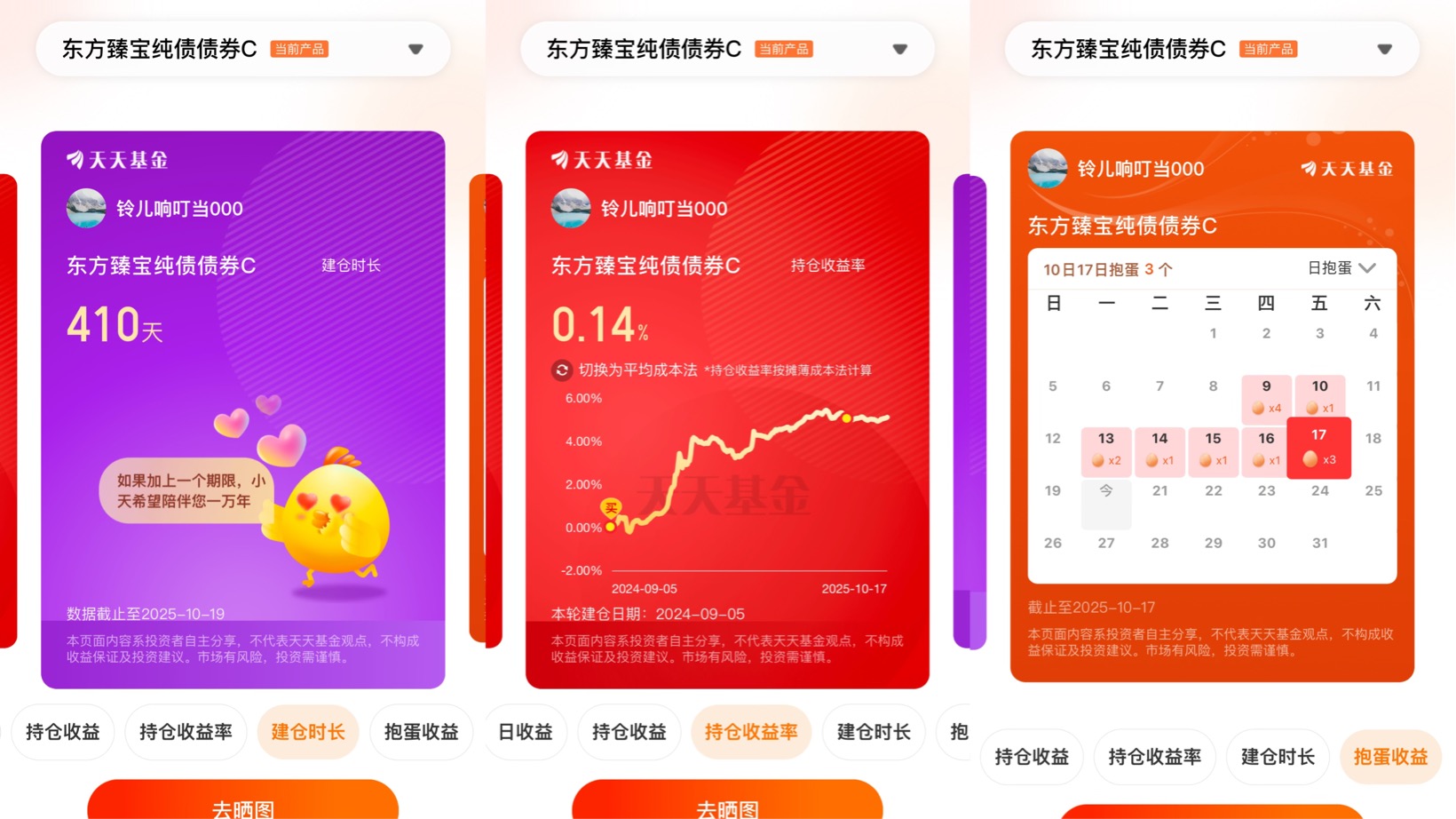 我是东方基金的持有者和支持者,我自己持有东方臻宝纯债债券C,已经持有四百多天了,