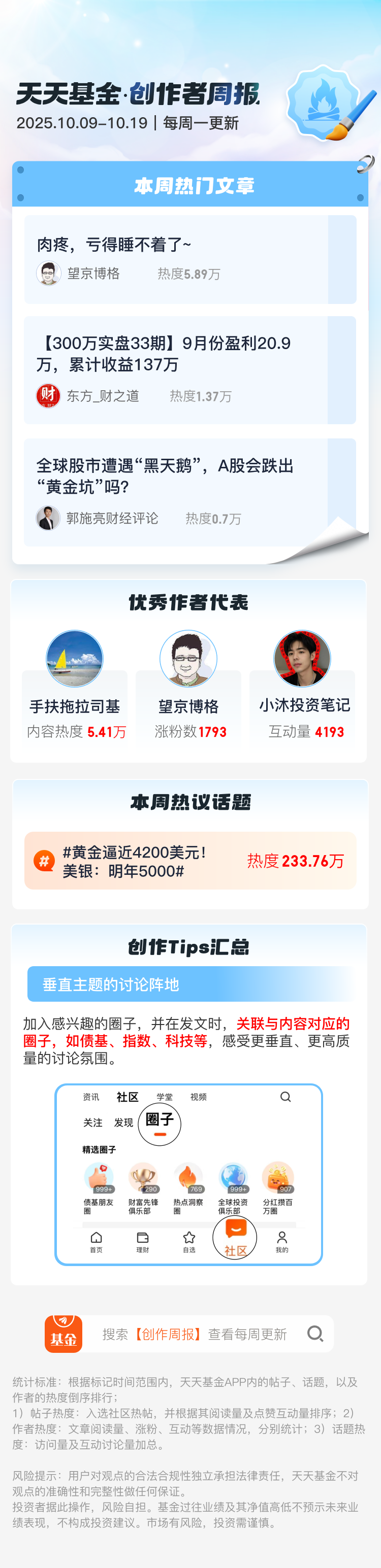 加入感兴趣的圈子,并在发文时,关联与内容对应的圈子,如债基、指数、科技等,感受更垂直、更高质量的讨论氛围。