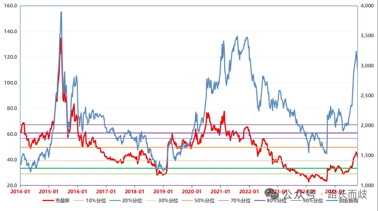 参考2014年至2016年牛熊转换周期,创业板当前市盈率41.95,估值分位36.53%。