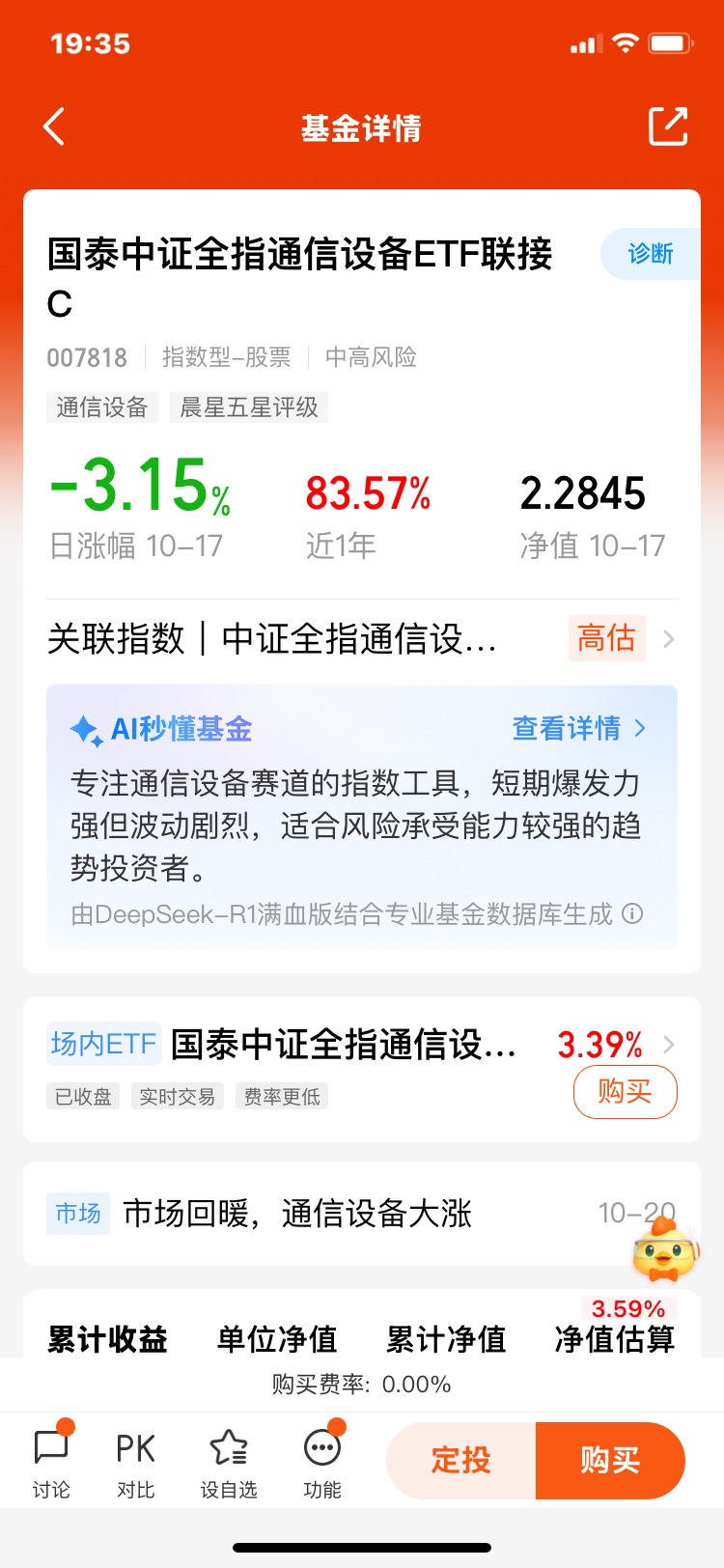 #科技热点摊开业啦#,随着5G建设加速和数字经济发展,通信设备行业正在迎来黄金发展期。在对比了多只行业ETF后,我发现$国泰中证全指通信设备ETF联接C(OTCFUND|007818)$ 表现很亮眼。这只基金跟踪的是中证全指通信设备指数,主要投资于5G基站、光通信、物联网设备等领域的龙头企业。为了更好的了解该基金,我有几个问题想请教艾小军经理: