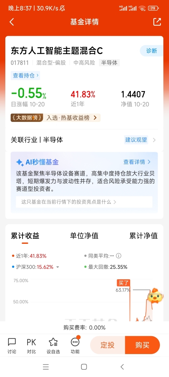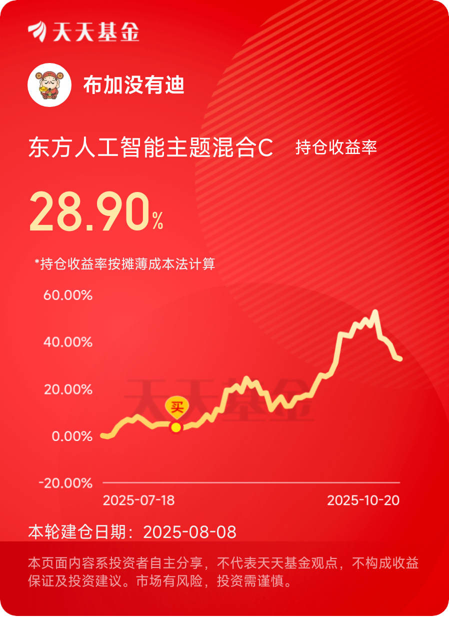作为$东方人工智能主题混合C$的持有人,看着账户里28.90%的收益率,真的要为