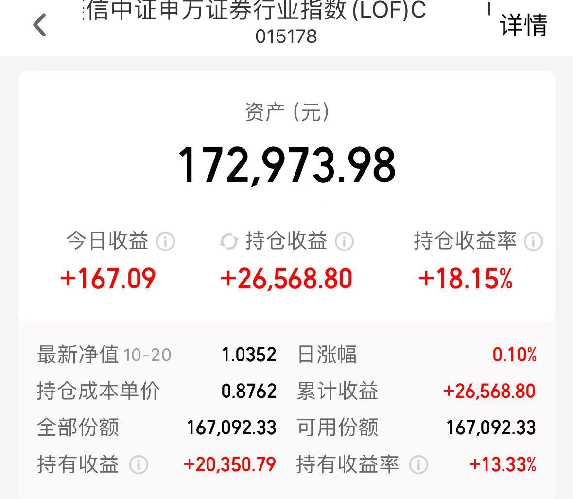 证券今天小吃肉,最高时候收益25%,现在是18%,我不太相信今年证券业绩这么好,而且牛市当中证券收益会这么低,我还是40%的目标