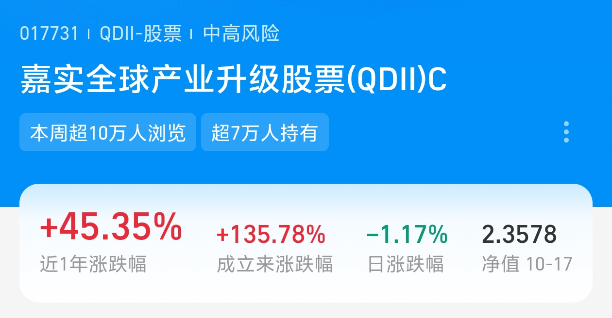 最近注意到$嘉实全球产业升级股票发起式(QDII)C$,关注了一阵子。它主要投资