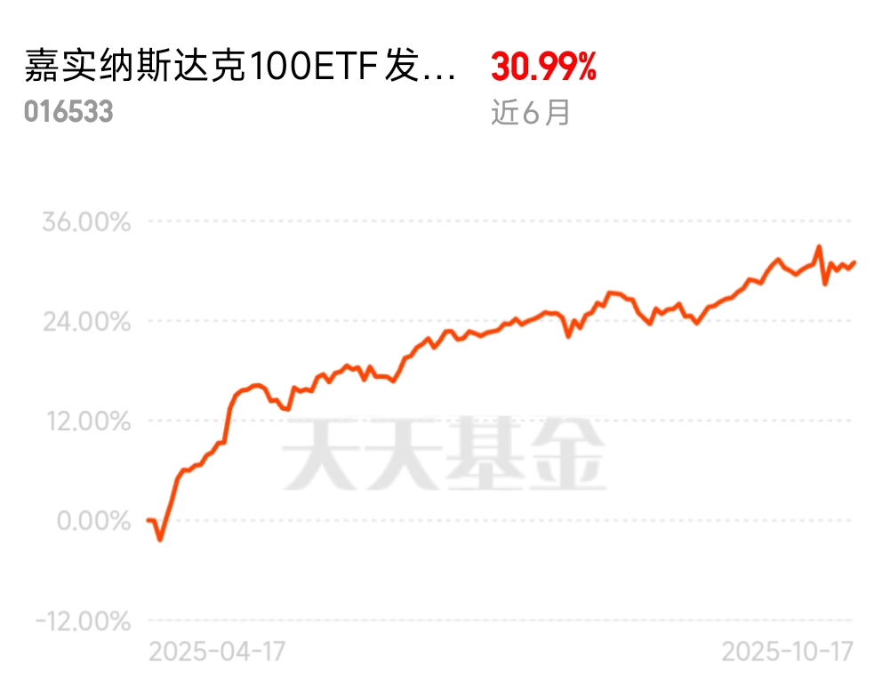 今晚纳斯达克100开盘后一路往上走,美股科技股的劲头确实挺足。最近留意到$嘉实纳