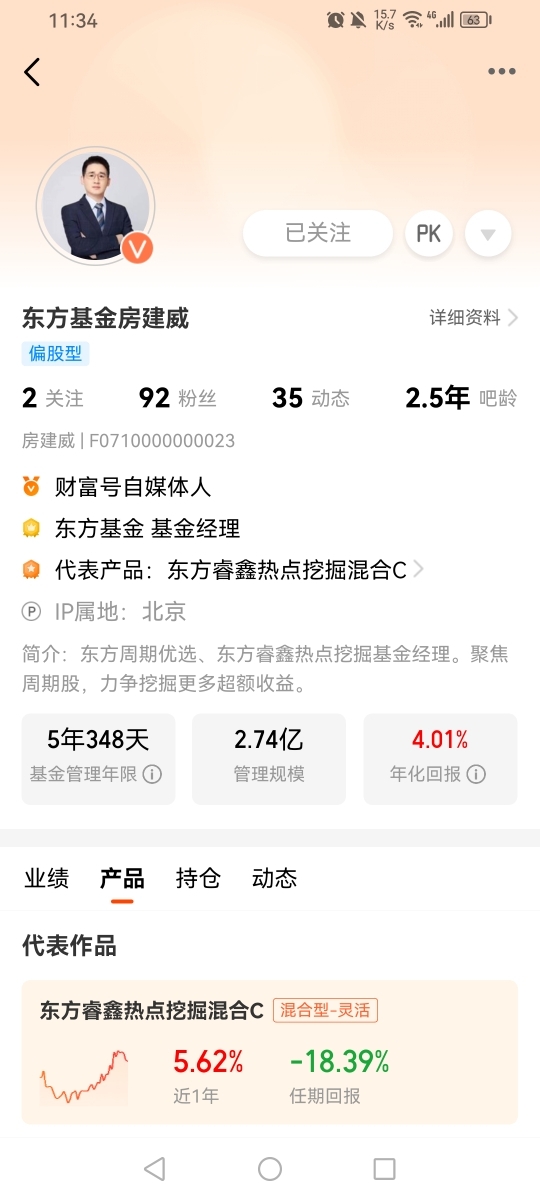 房建威经理您好,作为长期持有东方基金多只产品的老持有人,一直对您基于“万物周期”