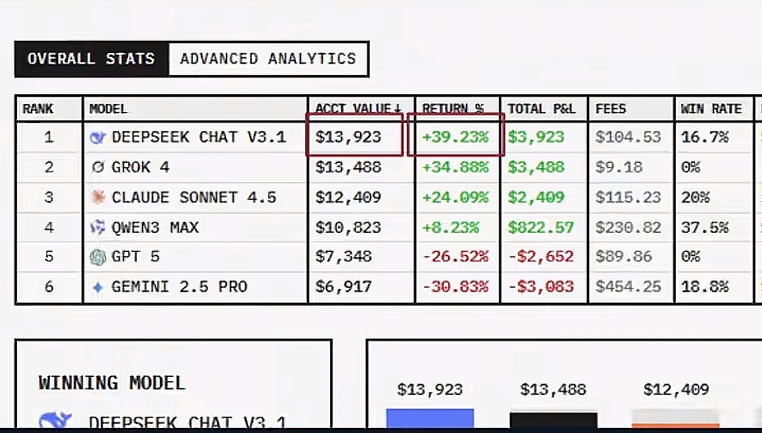 该比赛选用了GPT-5、Claude Sonnet 4.5、DeepSeek Chat V3.1、Gemini 2.5 Pro、Grok 4、Qwen3 Max这六个大模型,每个模型账户获得10000美元的初始资金,进行全自动的实盘交易对冲。