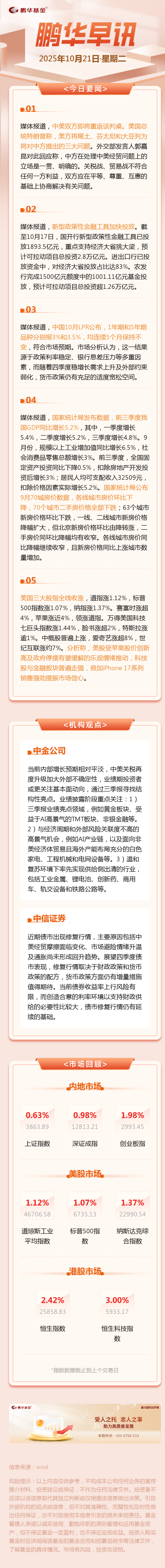 鹏华早讯10.21 中美双方即将重返谈判桌