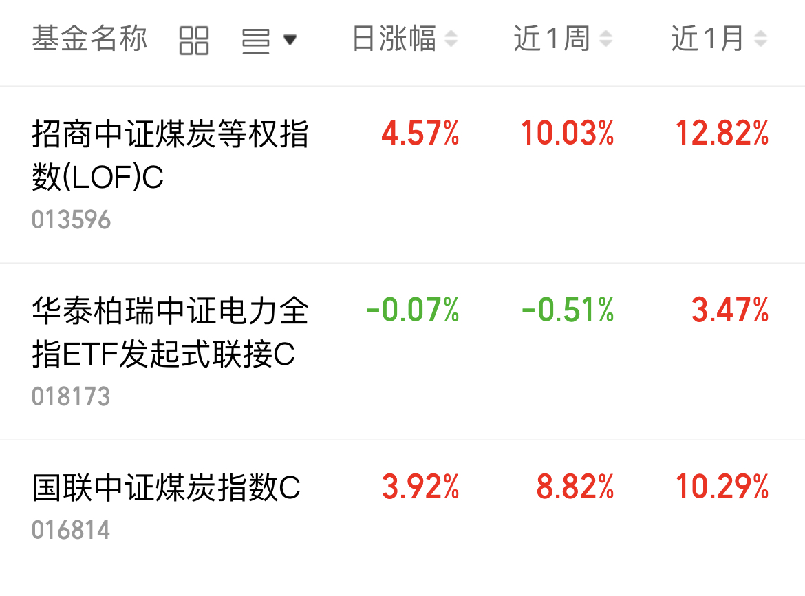 $招商中证煤炭等权指数(LOF)C(OTCFUND|013596)$昨天上涨4.57,近一月涨幅12.82%,业绩优秀。
