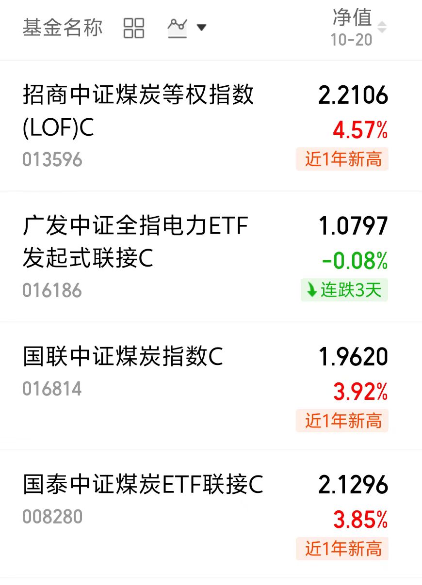大盘昨天整体涨了不少,科技、新能源、煤炭等表现都很不错,煤炭板块昨天涨了不少呢,来看看更新涨幅!$招商中证煤炭等权指数(LOF)C(OTCFUND|013596)$昨天大涨4.57%