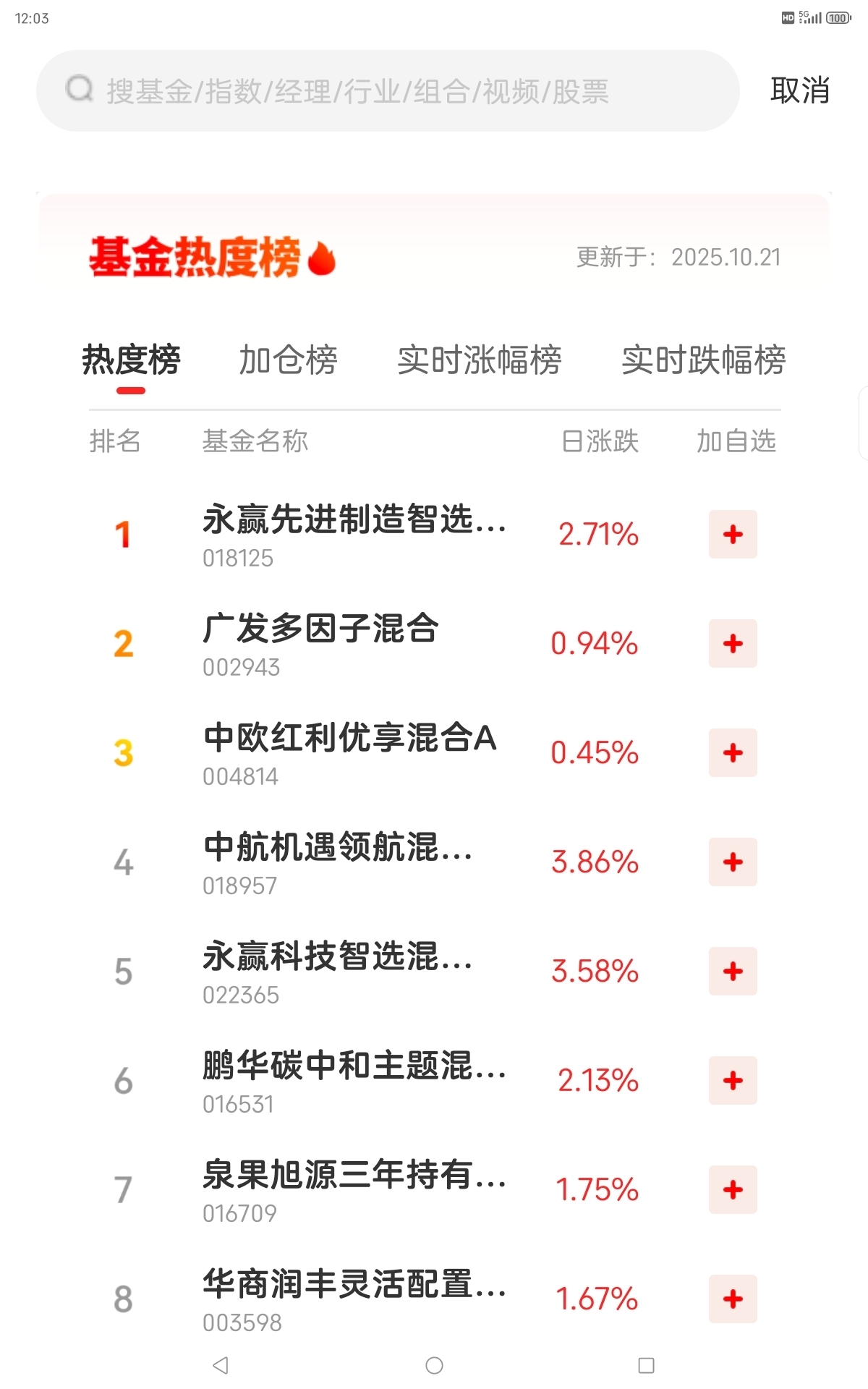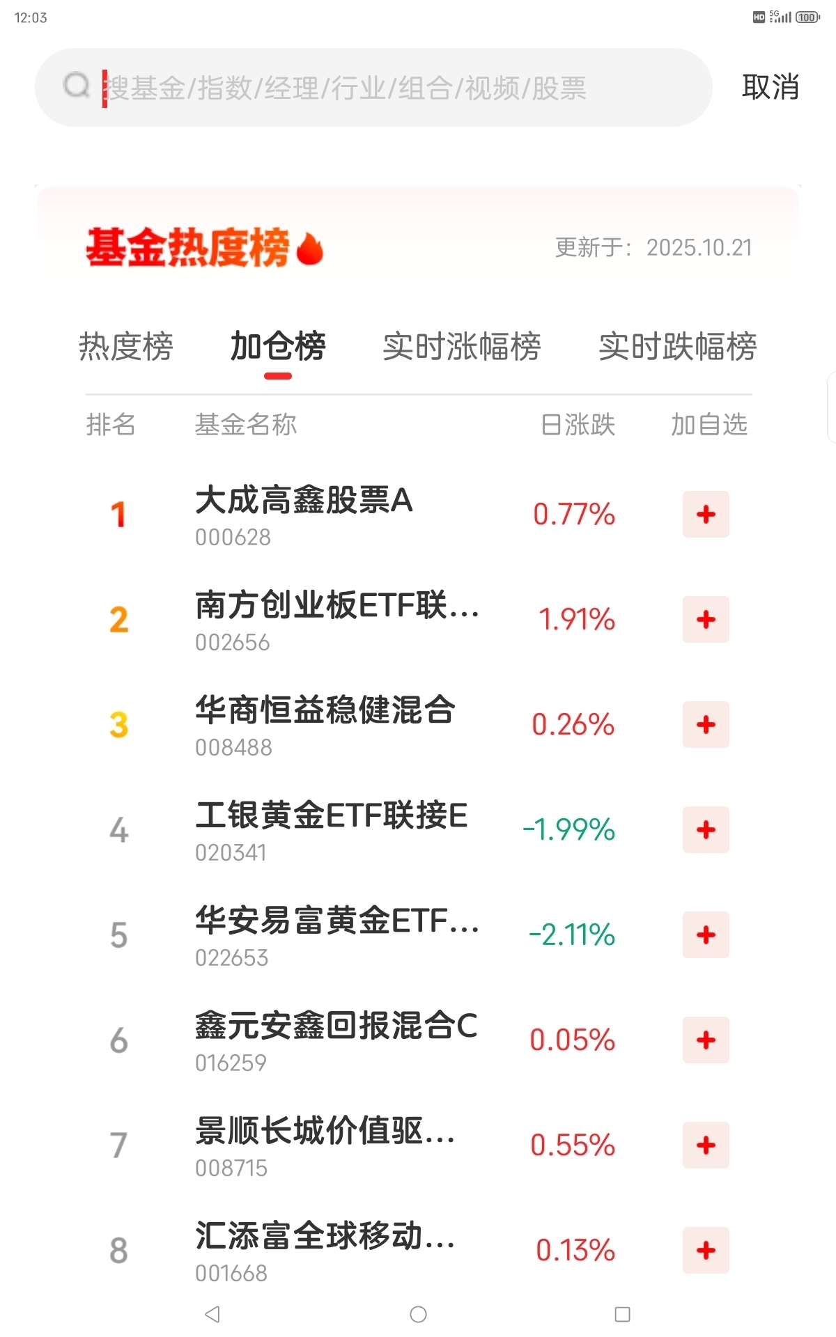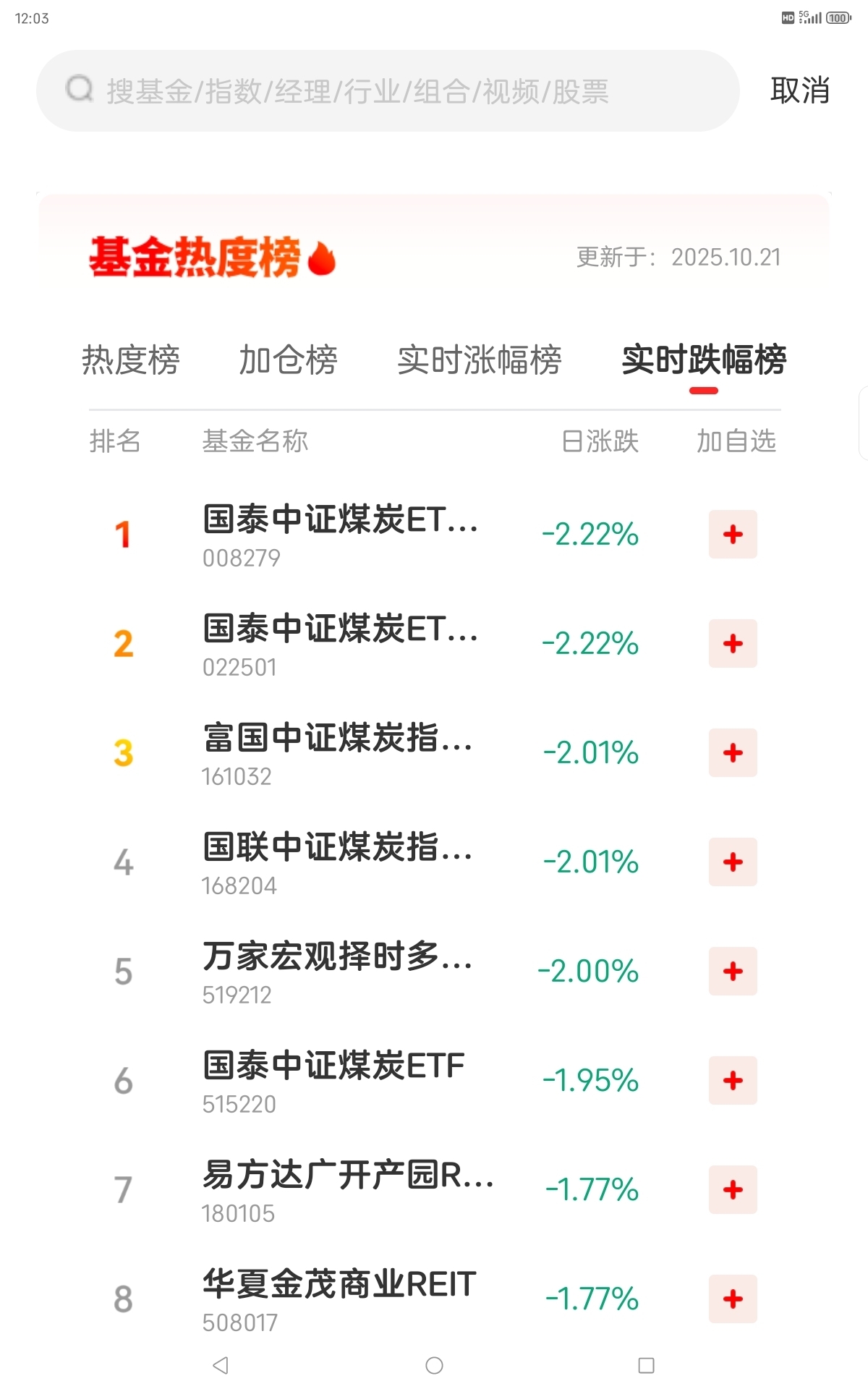 10月21日基金热度榜,加仓榜,实时涨跌幅榜。 通信,煤炭