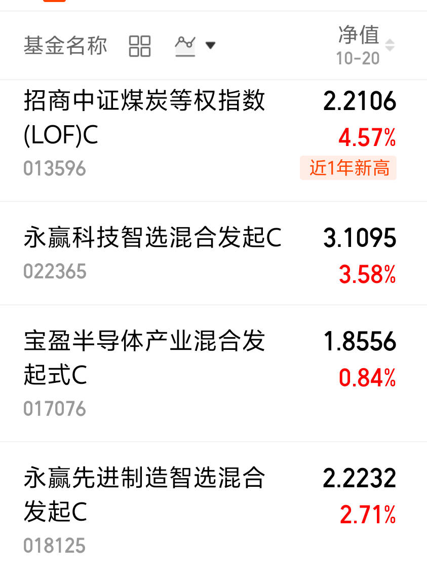 大盘昨天整体涨了不少,科技、半导体、煤炭等板块表现都很不错,来看看昨天涨幅!$招商中证煤炭等权指数(LOF)C(OTCFUND|013596)$昨天涨了4.57%