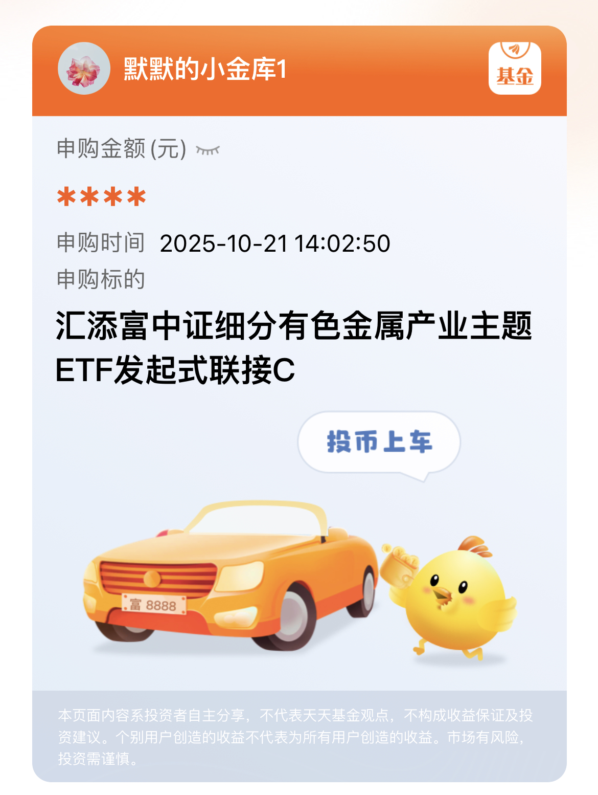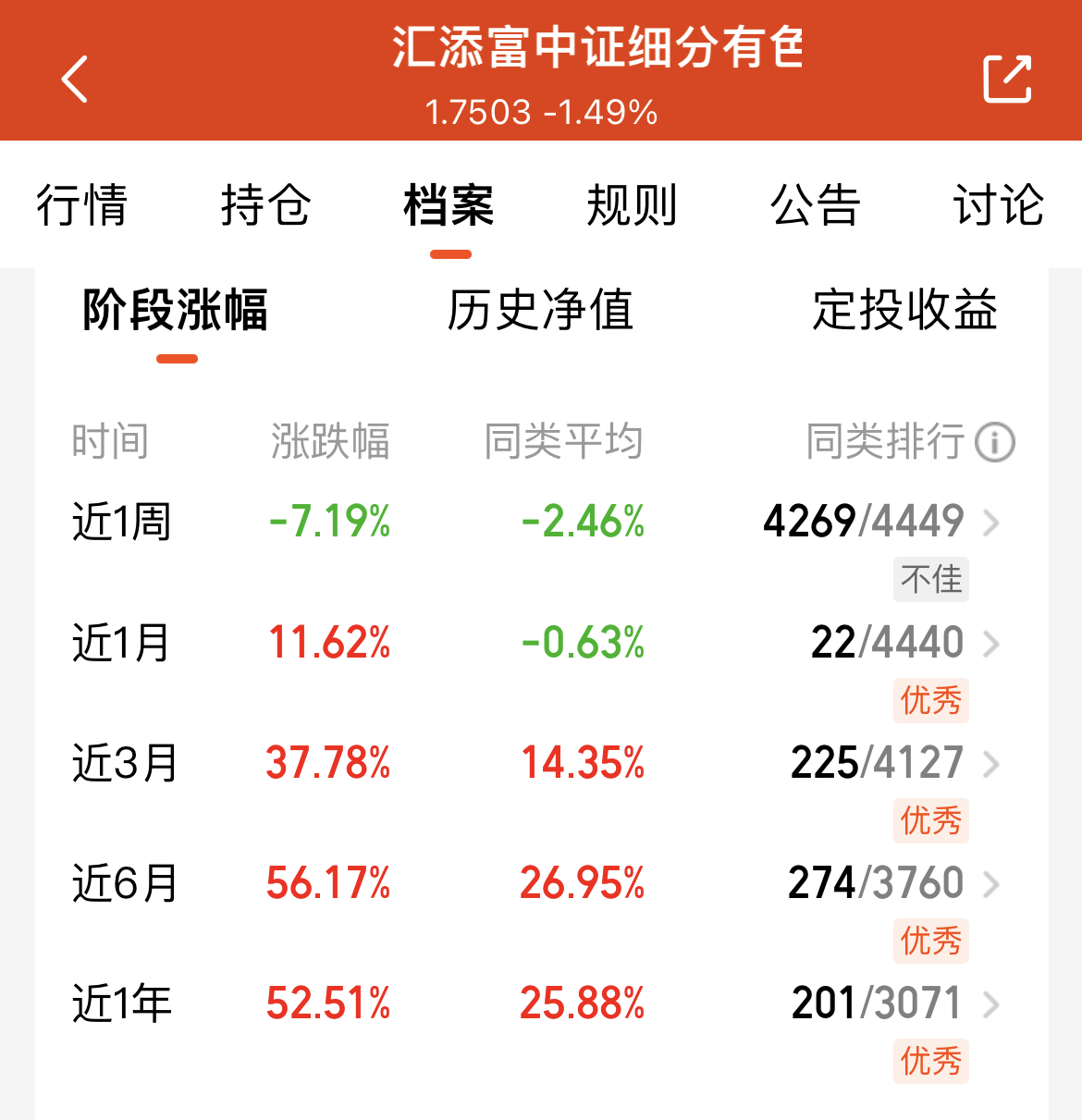 今天大盘行情向好,多板块普涨,调整后的有色金属板块也迎反弹,我打算加仓一波$汇添富中证细分有色金属产业主题ETF发起式联接C(OTCFUND|019165)$。这只基金表现优秀,目前估值涨1.29%,近一个月涨11.62%,近三个月涨37.78%,近半年超56%,各阶段业绩都很突出。它跟踪指数含铜量30%、黄金占比14%,聚焦紫金矿业等龙头,能精准抓板块主线。