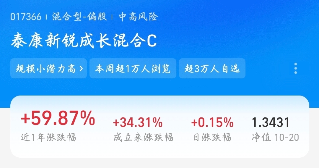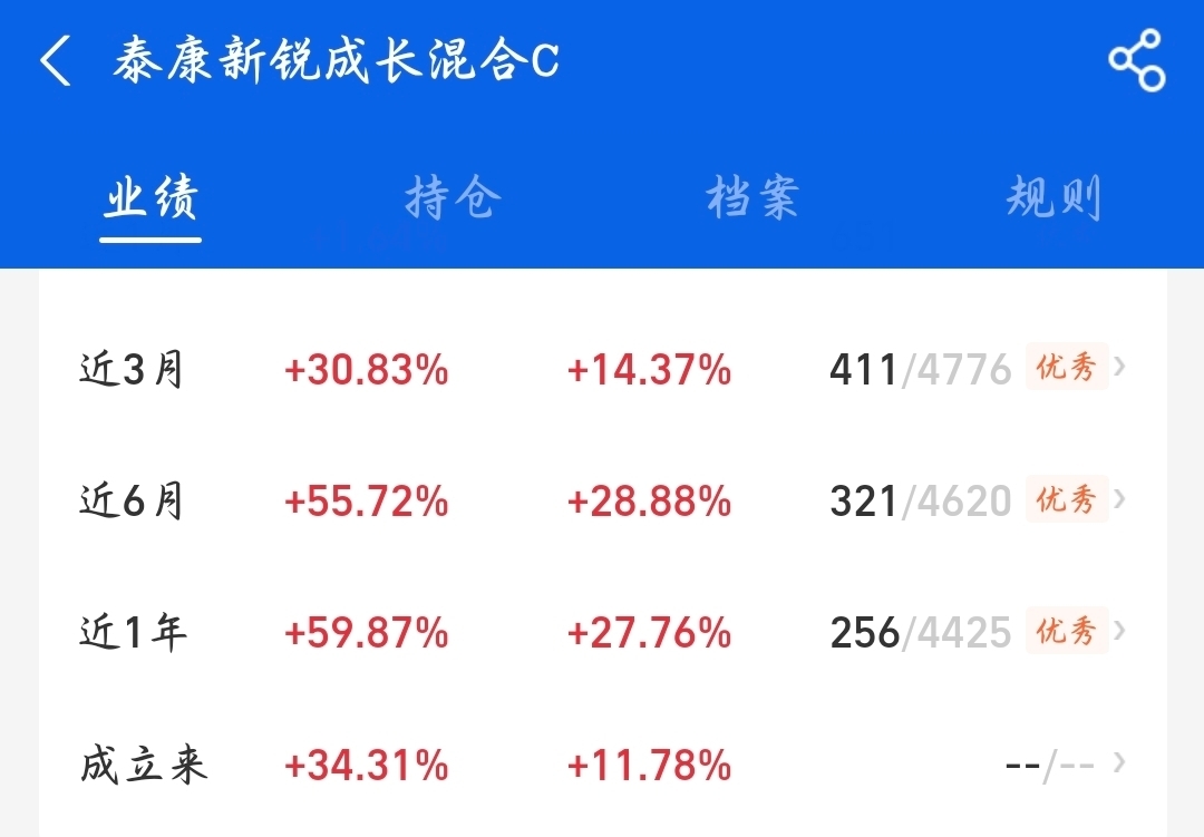 太牛啦,今日三大指数集体上涨,特别是我看好的泰康新锐成长C今天估值大涨2.96%,近一年涨幅已经冲到59.87%,说实话,这表现真挺让人惊喜的!