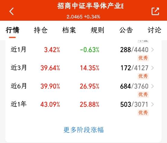 今日大盘呈现高开高走态势,市场行情整体向好,其中半导体板块表现尤为突出,领涨市场。$招商中证半导体产业ETF发起式联接C(OTCFUND|020465)$目前估值2个点,期待继续走高。半导体板块的核心驱动因素在于国产替代和自主可控政策的持续推动,这预示着半导体产业在未来具有广阔的发展前景。从中期视角来看,行业催化剂不断涌现,包括TMT领域第三季度财报的积极表现,以及即将实施的“十五五”规划等利好因素。这些叠加效应预计将进一步提升科技板块的投资价值,驱动其持续受益于政策与市场红利,展现出稳健的增长潜力。总体而言,科技行业的结构性机会值得关注,未来可期,今天继续加仓$招商中证半导体产业ETF发起式联接C(OTCFUND|020465)$了!