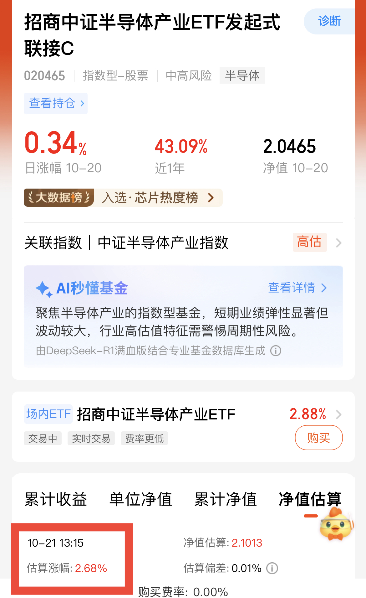 今天半导体板块表现强势,盘中涨超2%,我持有的$招商中证半导体产业ETF发起式联接C(OTCFUND|020465)$昨天上涨0.34%,今天估值又涨了2.68%,近三个月涨幅超39%,业绩表现优秀。从中长期来看,半导体行业发展逻辑清晰。