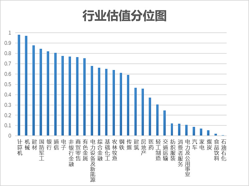 根据招财乐投顾行业估值分位统计,计算机、机械的估值水平处于近五年历史90分位以上,汽车、家电、煤炭等5个行业估值处于近五年10分位以下。