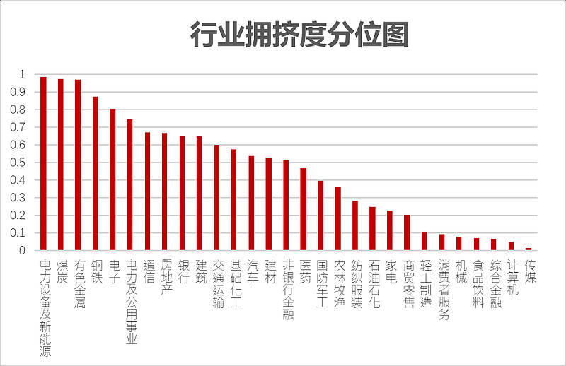 (行业拥挤度分位:当前板块成交金额占市场总成交金额的分位)