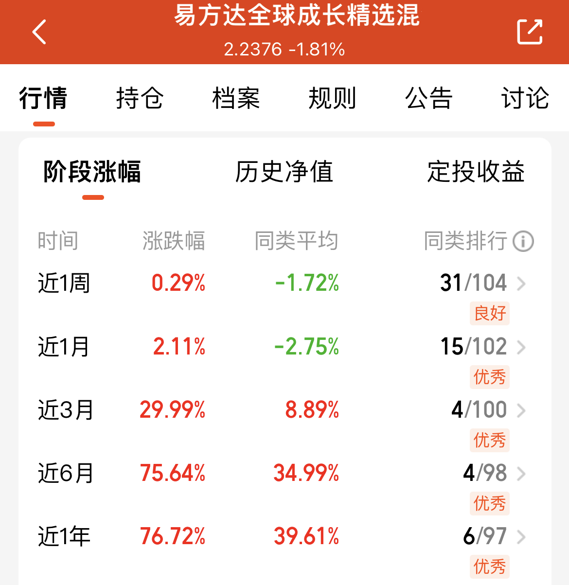 今天A股、港股高开高走,美股隔夜也反弹,大科技行情热度攀升,我手里的$易方达全球成长精选混合(QDII)人民币C(OTCFUND|012922)$。它聚焦全球科技赛道,能同时布局A、H、美三市标的,今年各地科技行情分化,这只基金“一篮子”配置刚好覆盖不同市场机会。近三个月涨幅近30%,近半年涨幅超75%,业绩表现优秀,回撤控制的也不错。现在科技反弹启动,它既能抓当下行情,也能享全球科技成长的长期红利,我也继续拿稳筹码,坐等吃肉行情啦!