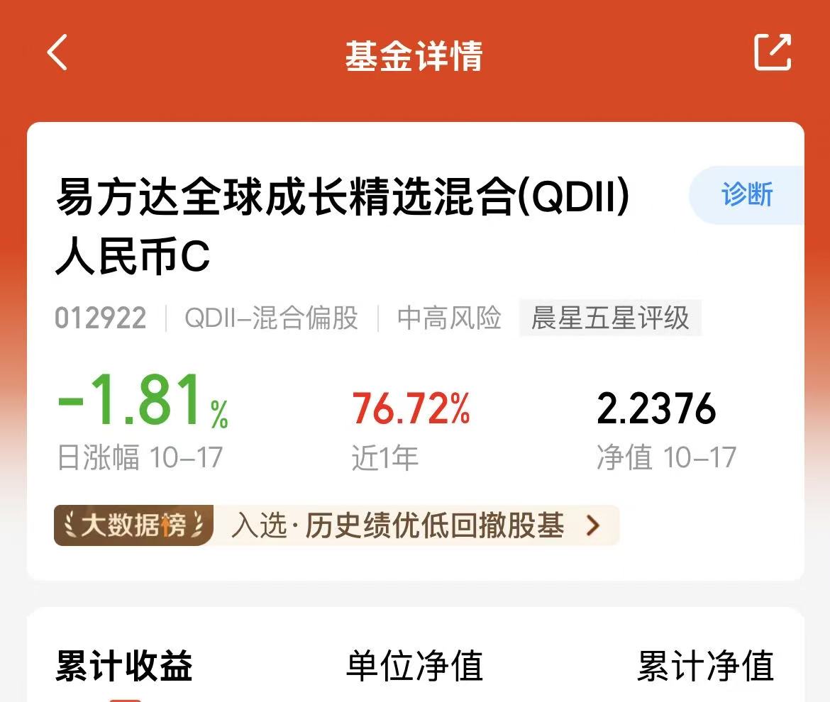 今天A股和港股都反弹上涨,昨天也美股也是收涨,可以说是三地市场均同步吃肉啦,$易方达全球成长精选混合(QDII)人民币C(OTCFUND|012922)$是刚好投资这三地市场的,年化收益率76.72%,长期业绩优秀,主要是科技方向为主的,经理的调仓能力也是比较强,要知道当下A股波动大,所以单一的市场比较难把握,相对来说我更偏爱全球市场。