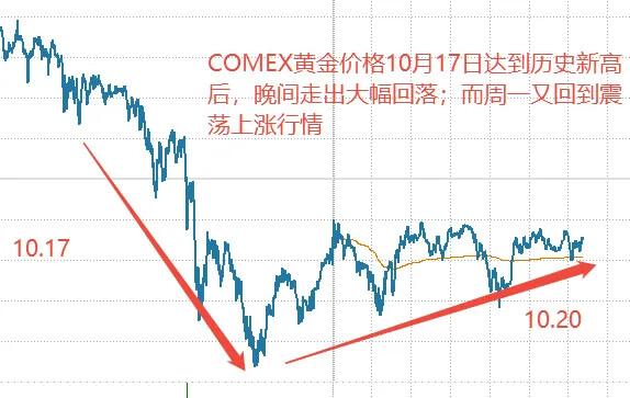 上周五,COMEX黄金价格一度冲高至4392美元/盎司,创下历史新高,但随后大幅回落,收盘4267.9美元,较盘中高点跌去超过一百美元,日内振幅达4.55%。