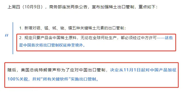 我们认为,与今年4月那轮“宣布6天后即暂缓”的关税变化不同,这一轮中方在稀土等关键领域的回应更为明确,这也意味着双方可能进入一段更长的博弈期,市场波动或许不会很快平息。
