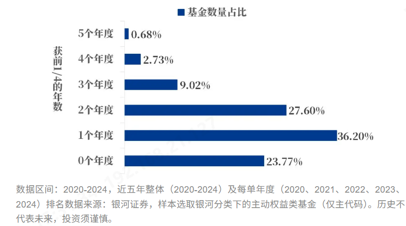有99%+的基金没有做到“年年前1/4”