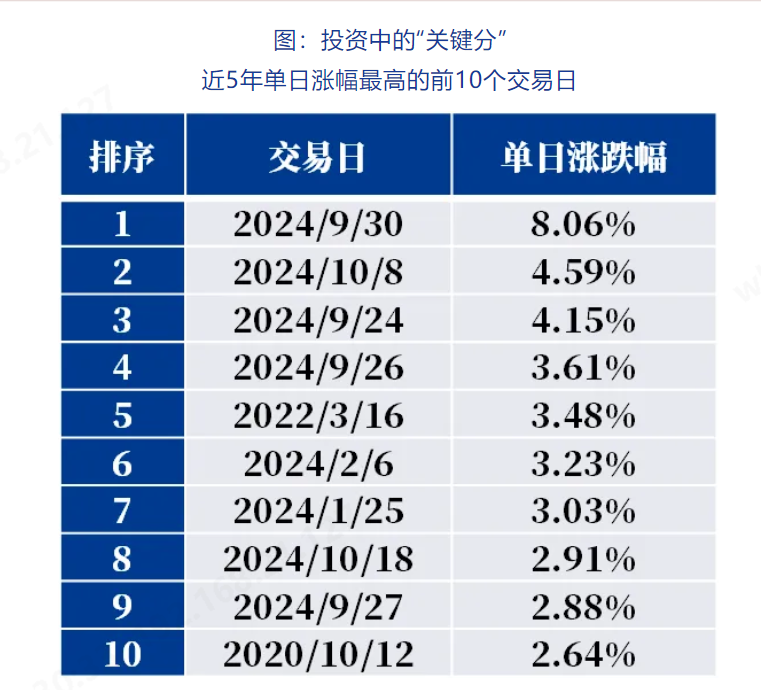 择时难做,投资中保持在场,或许对于大部分投资者,是“把握关键分”的较佳举措。