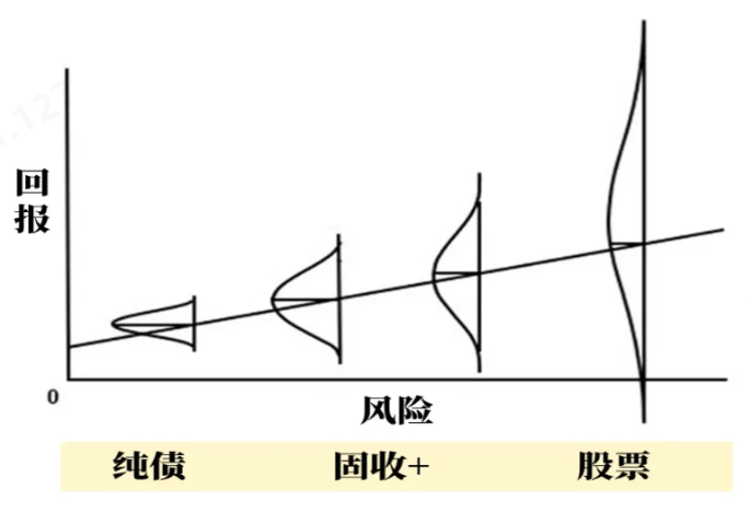 图:长期来看股票对应产品的波幅更大、纯债更小