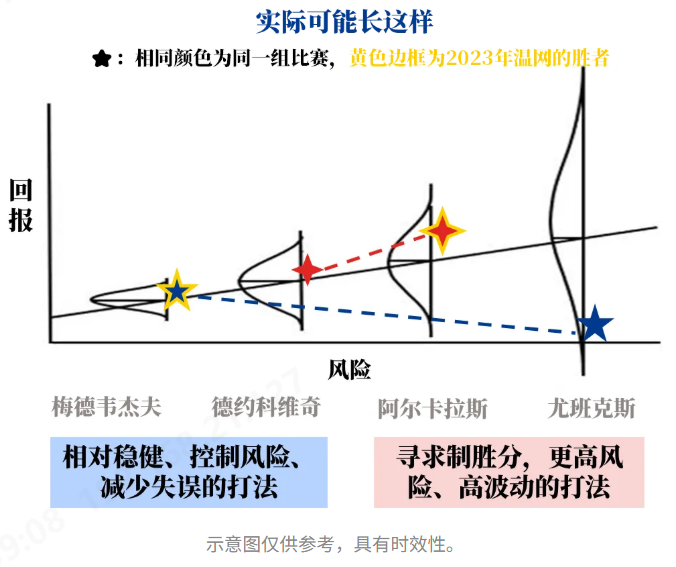 梅德韦杰夫(相对稳定的打法)击败 尤班克斯(相对高波动的打法)