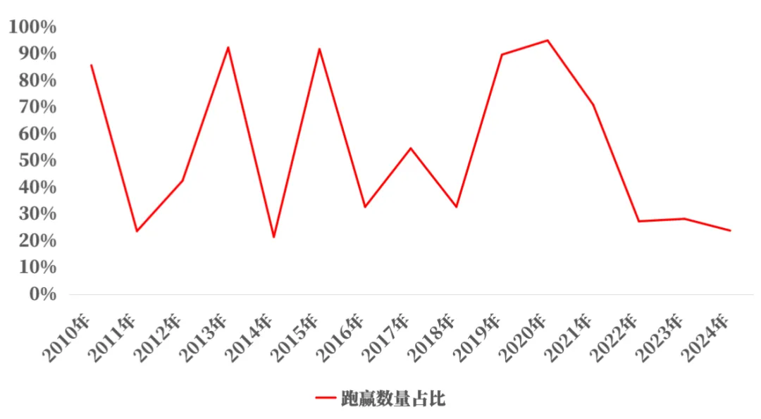 单年度主动权益基金战胜业绩比较基准数量占比