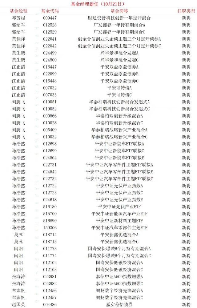 新聘12人,涉及42只基金;离职6人,涉及17只基金。