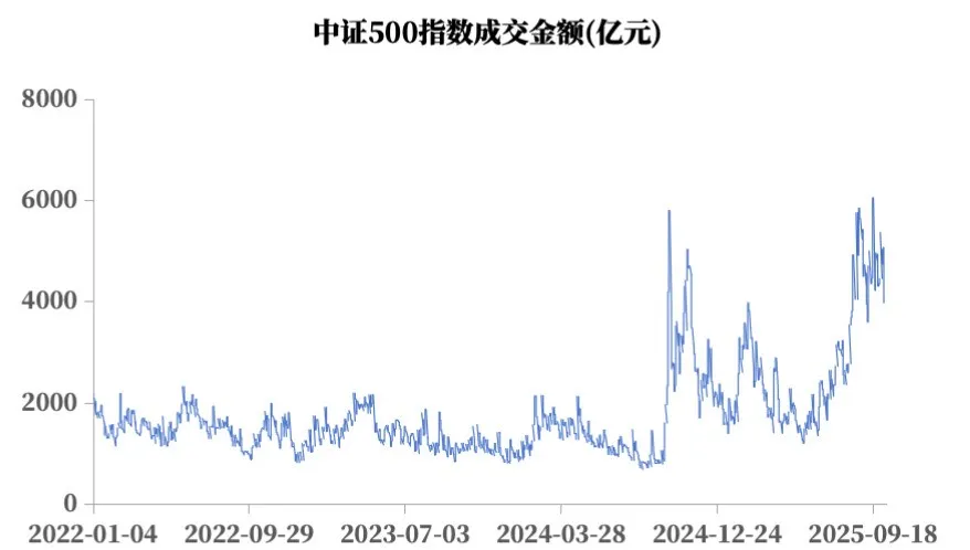 历史数据显示,自去年“924”行情以来,由于政策提振和市场情绪升温等,中证500指数的交易活跃度明显提升——2022/1/4至2024/9/23,中证500指数的区间日均成交额为1366亿元,而2024/9/24至2025/10/15的区间日均成交额为2757亿元,出现翻倍增长(如下图)。
