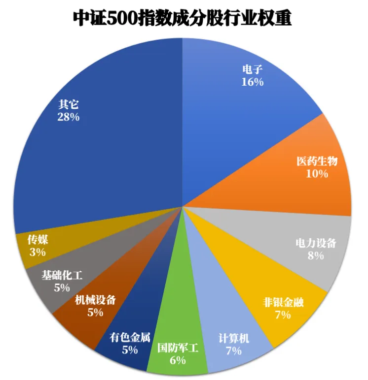 究其原因,与中证500指数成分股特征有关。Wind数据显示,截至2025年6月底,中证500指数覆盖前五大行业为:电子(15.5%)、医药生物(10.2%)、电力设备(7.6%)、非银金融(7.5%)、计算机(6.6%),偏重科技成长风格。