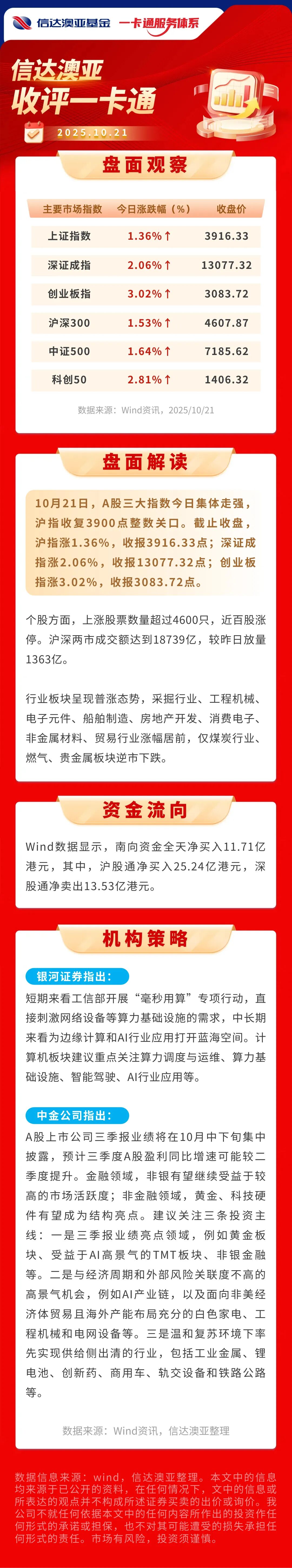【收盘点评】A股三大指数今日集体走强,沪指收复3900点整数关口。