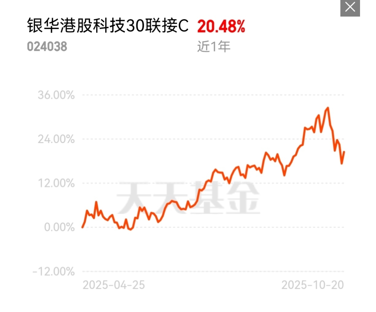 对比我手上的几个科技基,今天$银华港股科技30联接C$最争气,估值直接快3%,成