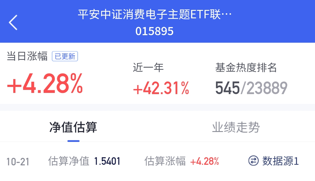 今日A股三大指数集体大涨,沪指涨1.36%收复3900点,创业板指领涨3.02%,超4600只个股上涨。今天这个消费电子方向全线收涨$平安中证消费电子主题ETF发起式联接C$ 涨了4.28%