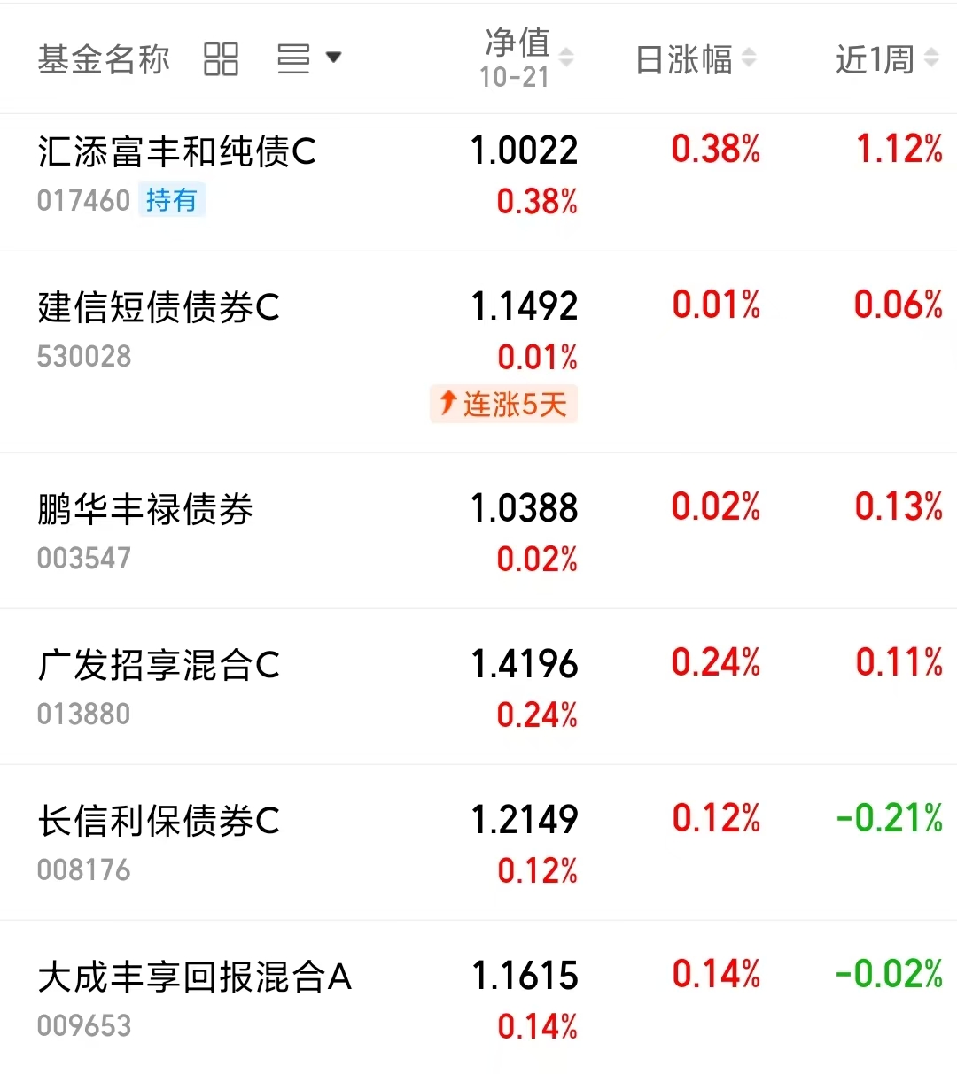 家人们今天市场回暖~我看债也走势可以呀,收了不少蛋,咱就说现如今的行情下稳健配置其实也蛮重要的呀~我看$汇添富丰和纯债C(OTCFUND|017460)$今天收涨112个蛋,丰和是30年超长债波段利器,久期恒定适合波段~